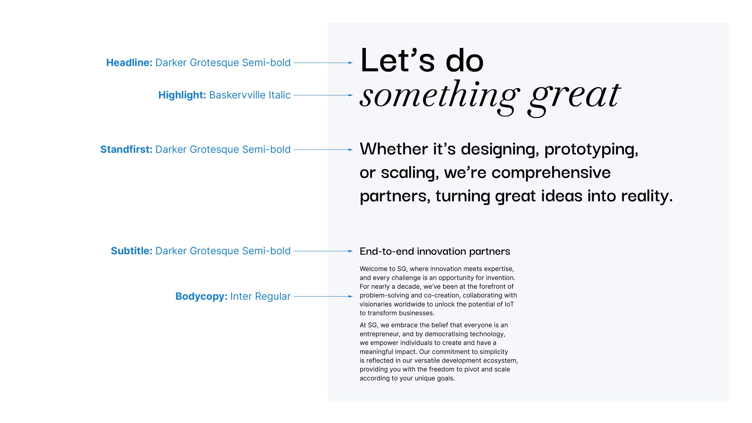 Darker Grotesque, a google font, has been chosen as a headline font of SG.