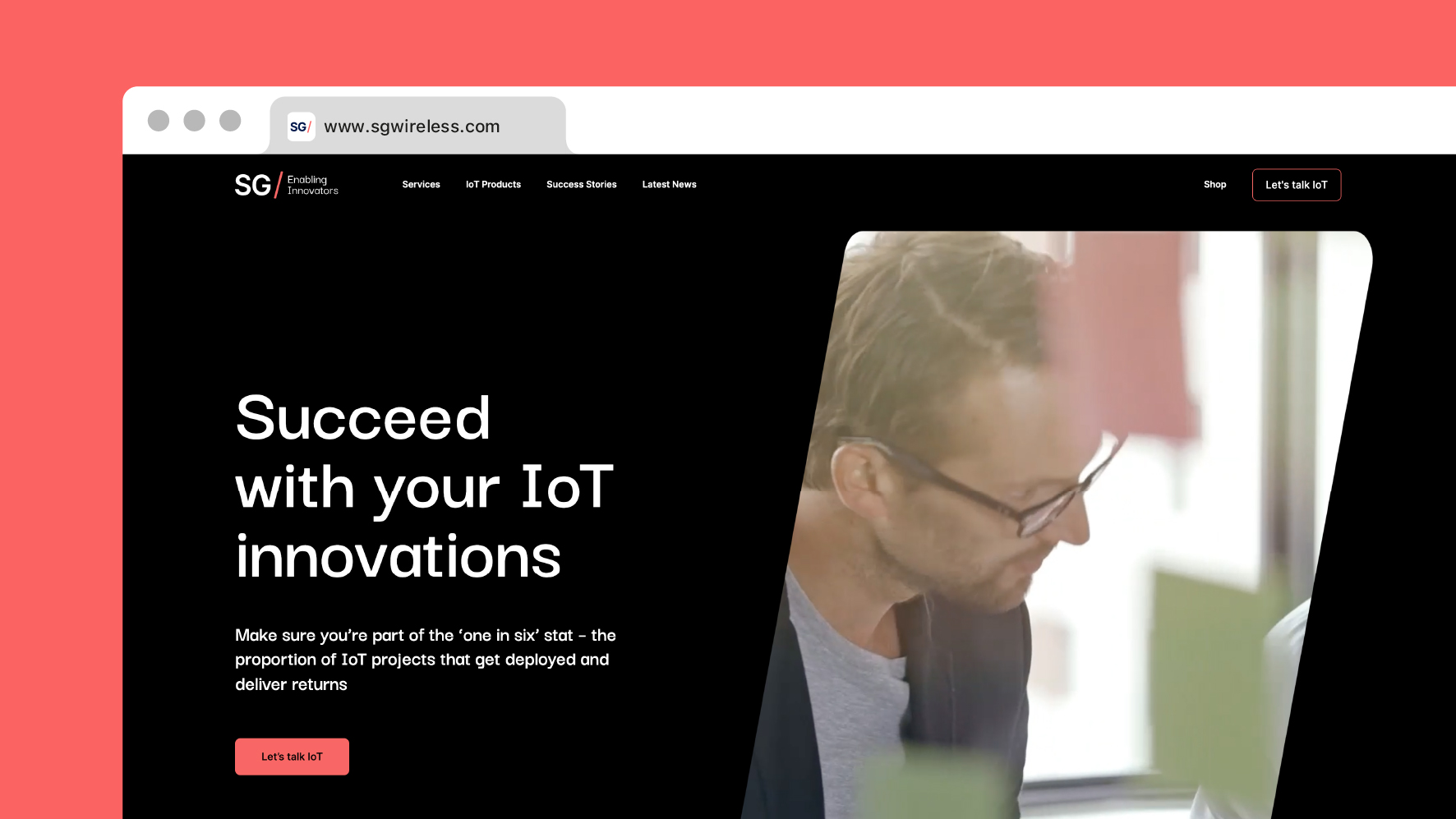 The SG Wireless website, designed to reflect our new brand and communicate clearly how we help IoT innovators.